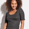 Zimmerli Women’s Underwear Maude Privé | T-shirt Short Sleeve, Ajouré Rib With Calais Lace – Blush | Blush
