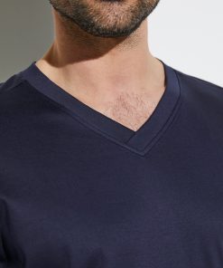 Zimmerli Men’s Loungewear Supreme Green Cotton | T-shirt Long Sleeve V-neck – Navy | Navy
