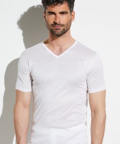 Zimmerli Men’s Underwear Royal Classic | T-shirt Short Sleeve V-neck, Super Fine – White | White