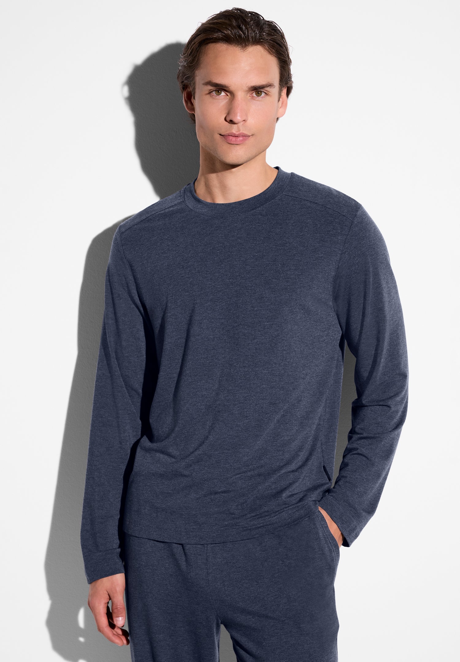 Zimmerli Men’s Loungewear Soft Lounge | T-shirt Long Sleeve – Blue Mélange | Blue Mélange