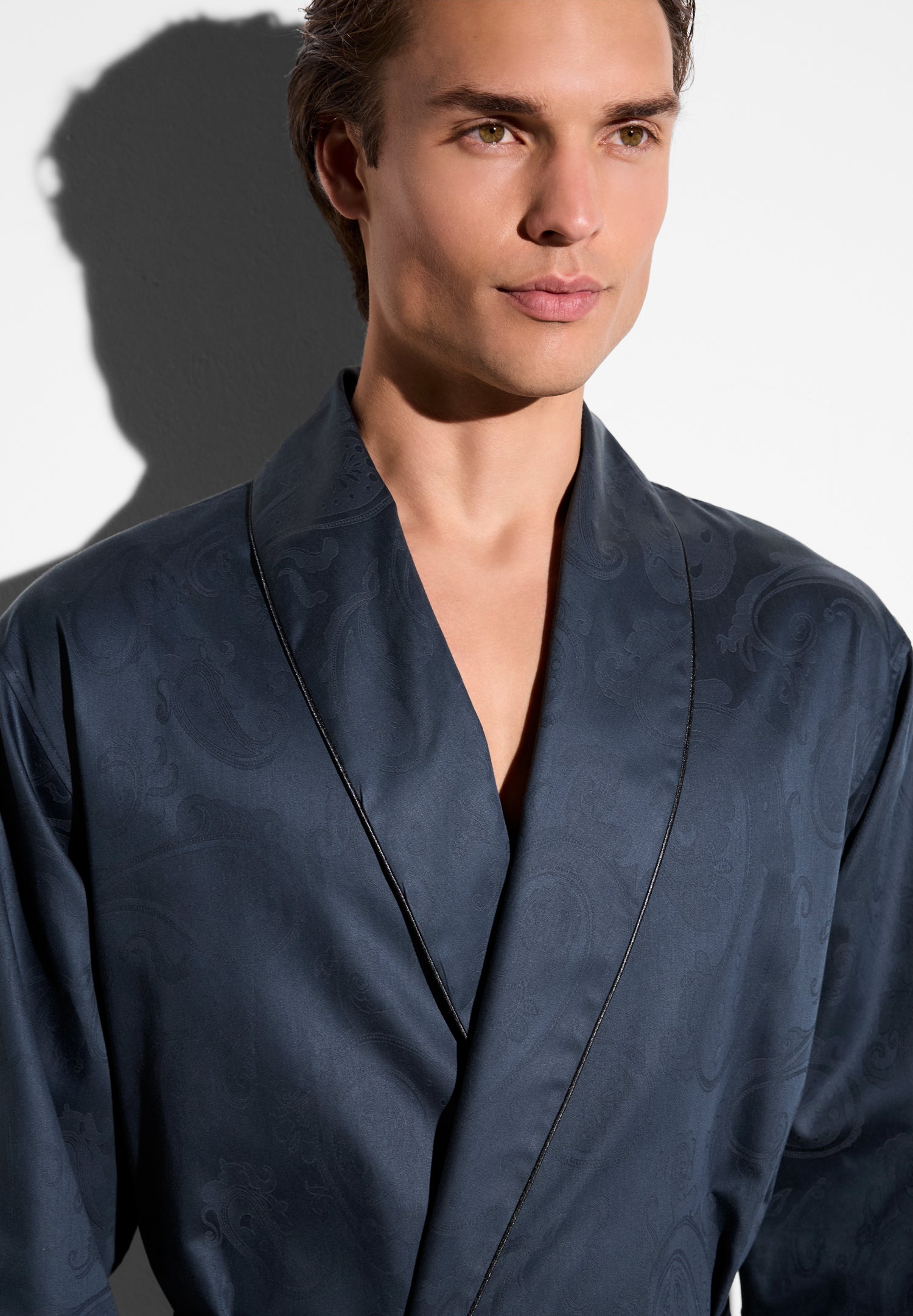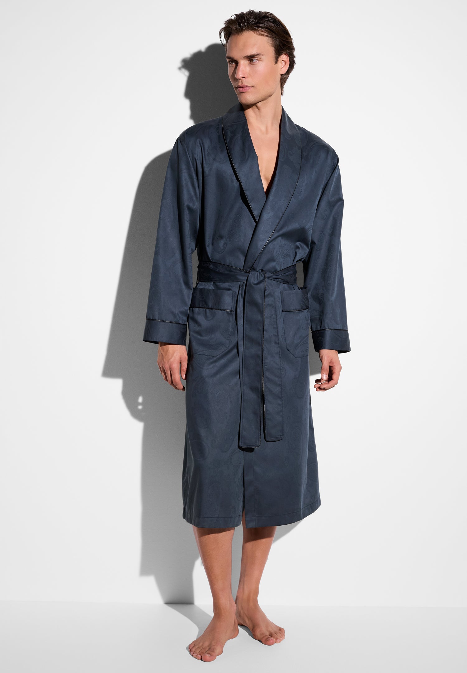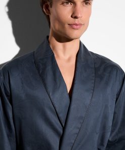 Zimmerli Men’s Nightwear Luxury Jacquard | Robe Long – Midnight | Midnight