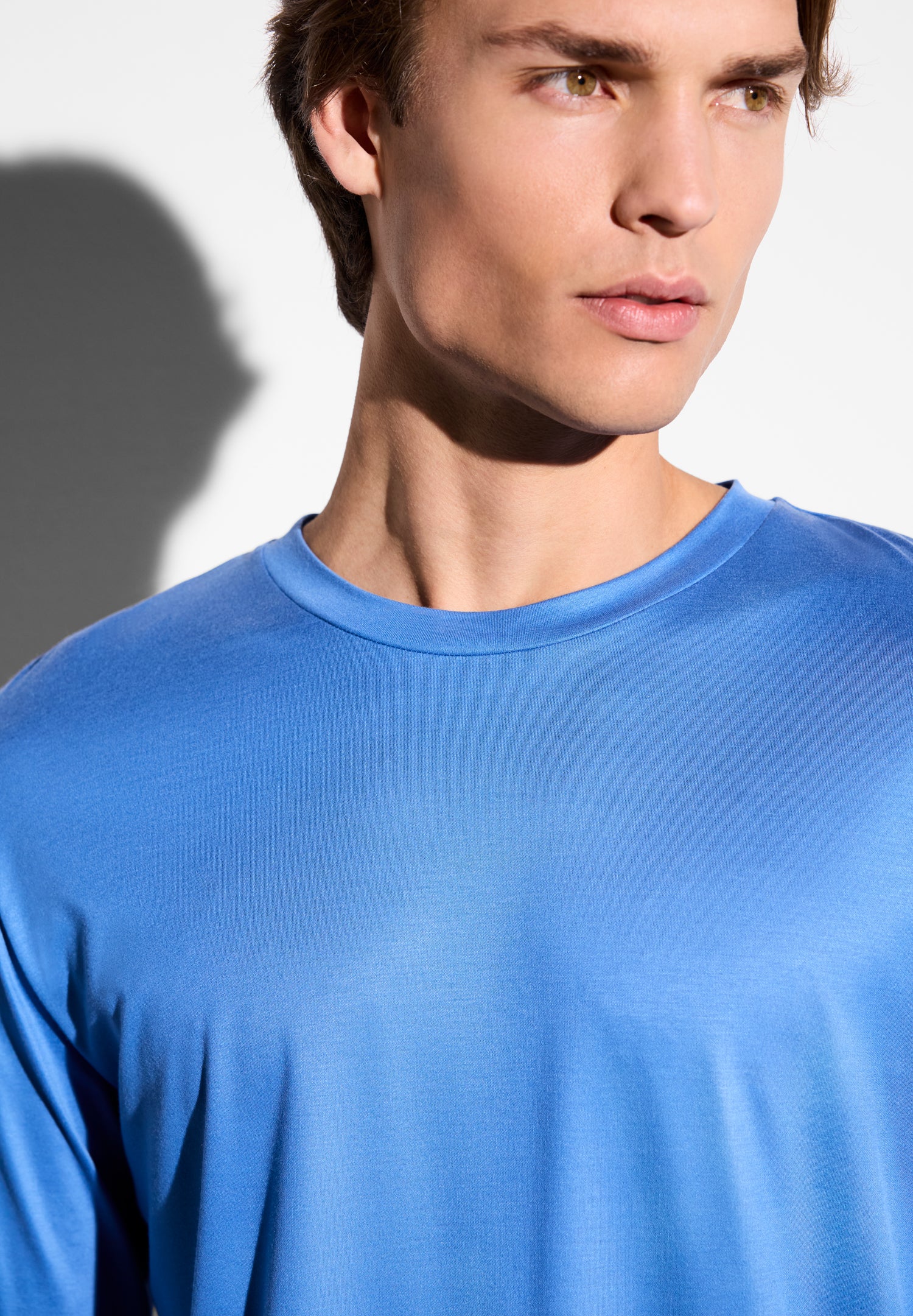 These climate-regulating long men’s pyjamas combine maximum comfort with a timeless design. The round neckline and elasticated waistband ensure a comfortable fit that keeps you feeling cosy throughout the night. The Material, a sustainable lyocell, offers a particularly smooth, flowing quality with a soft shimmer and feels cooling against the skin. lyocell, an environmentally friendly Material made from eucalyptus fibres, is known for its breathable and climate-regulating properties and ensures a pleasant wearing experience during the night. The luxurious Material moulds perfectly to the body and gives the long pyjamas an exclusive, sophisticated look.