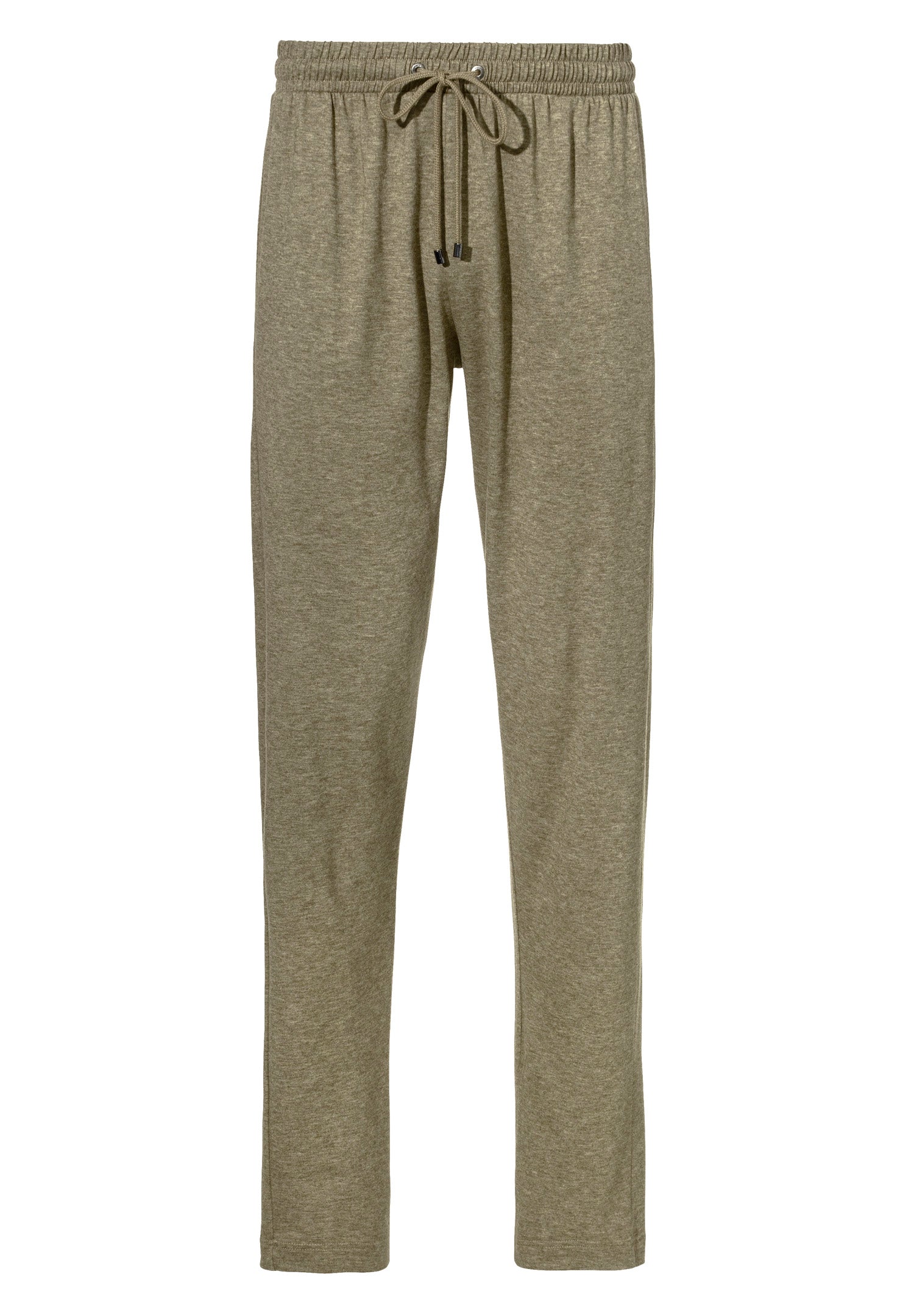 Luxurious, warming and yet light in a trendy melange look. The long pants for men have a hidden, elastic waistband with drawstring. The ends of the cords as well as the cord eyelets are finished with grey metal elements on which the Zimmerli of Switzerland logo has been engraved. In addition, the loungewear pants impress with two seam pockets and a back pocket. Latter is closed with a mother-of-pearl button. In this case, the button closure is a triangular formed fabric loop covering the button almost completely when shut. The fit is rather loose and therefore ensures a comfortable wear.