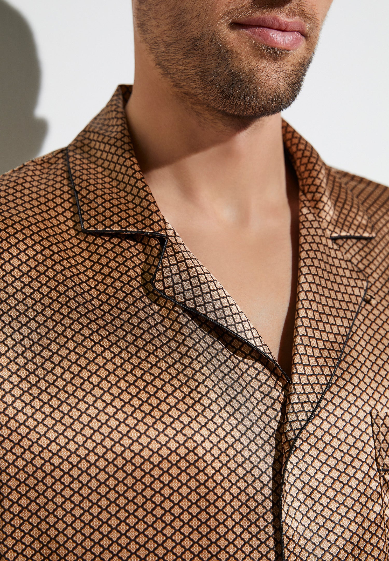 Spoil yourself with pure luxury and enjoy the feel of 100 % genuine silk. These pyjamas from the Silk Nightwear collection offer wonderful moments of relaxation and guaranteed elegance. The easy-care fabric helps regulate the temperature and is resistant to creasing. It has an exquisite sheen that underscores the relaxed fit. Colour-contrasting details emphasise the stitching around the borders, collar and side pockets while white pearl buttons add the perfect finishing touch to these exclusive pyjamas. This is a genuine luxury garment for gentlemen of the world, suitable for wearing at any time of the year.