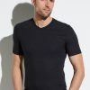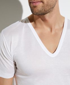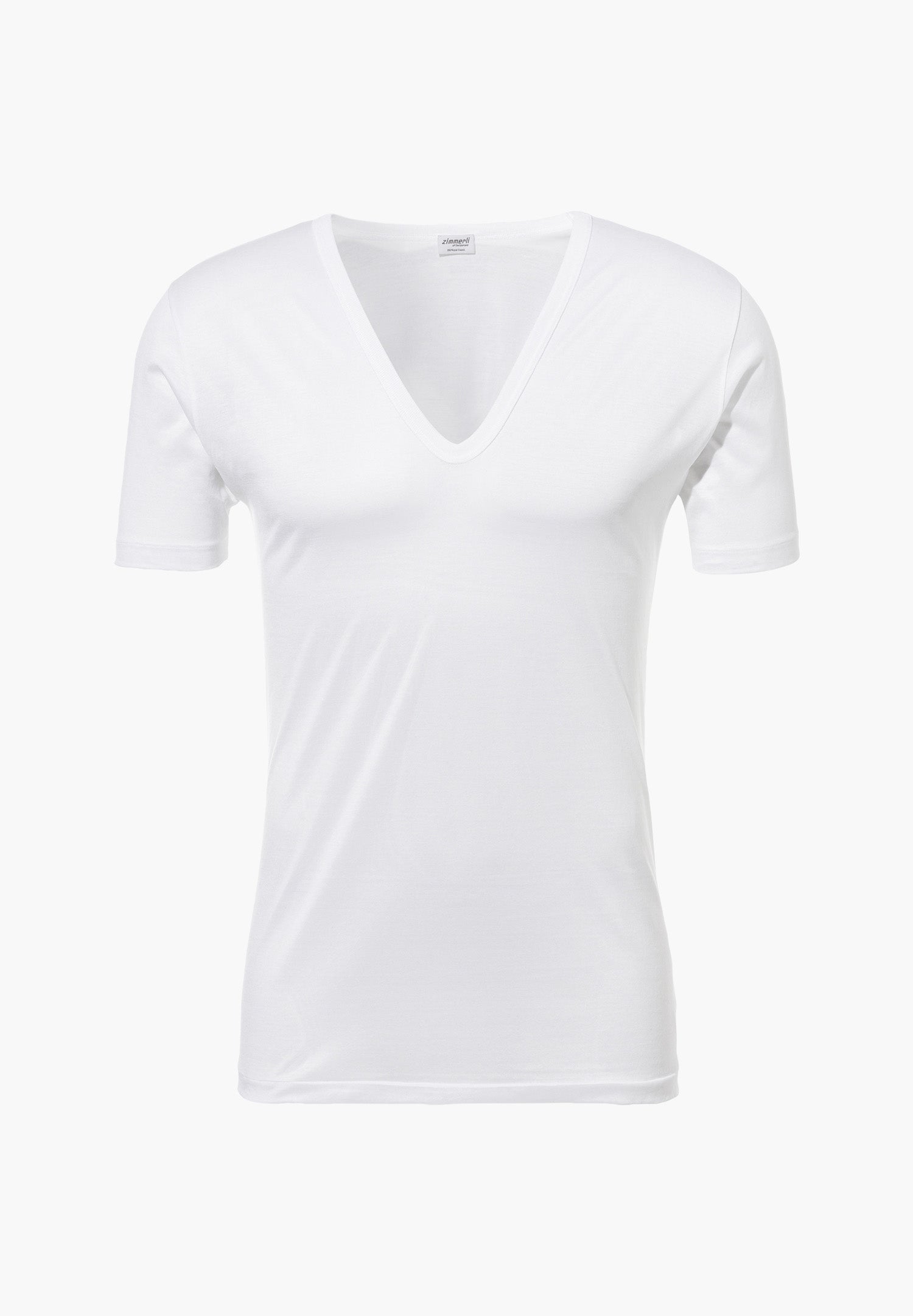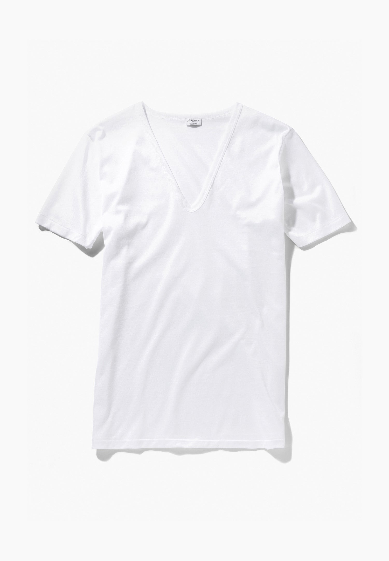 This classic short-sleeved shirt is made using high-quality twined cotton. The cotton used is mercerised to enhance its quality. This gives it a new fibre structure and restores the sheen it lost during the natural drying process after harvesting. The mercerised cotton is particularly strong and keeps its shape well. The cotton is then woven to produce an exquisite single jersey fabric. The high-quality single jersey shimmers like silk and is slightly translucent.
