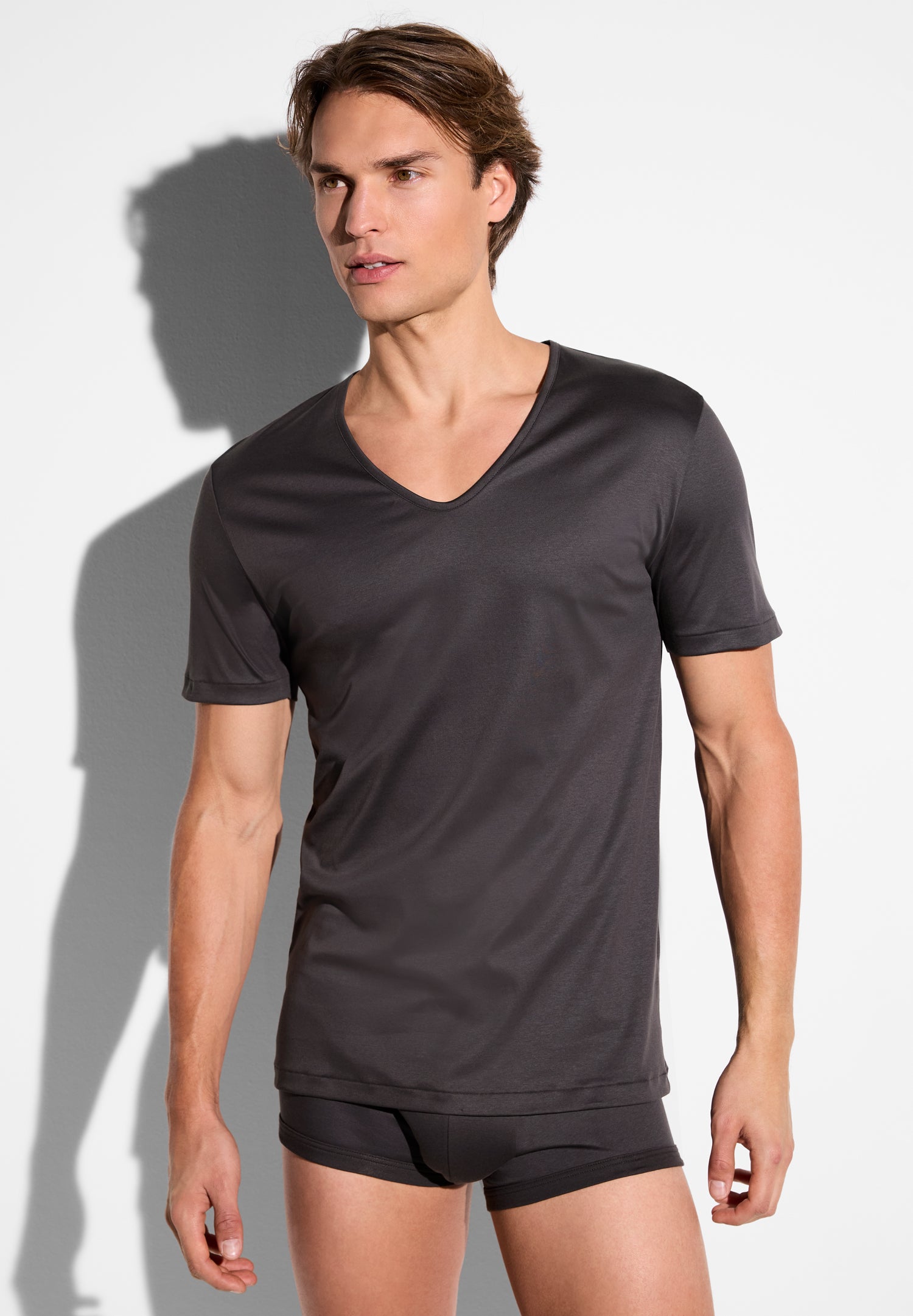 Zimmerli Men’s Underwear Sea Island | T-shirt Short Sleeve V-neck – Espresso | Espresso