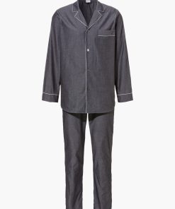 The good feeling of wrapping oneself in fresh, cool bed linen does not have to stop with the blanket and sheets. The pyjamas made of woven cotton with satin voile transfer private luxury directly to the skin. A classic cut, comfortable fit and stylish details to help end the day in style.