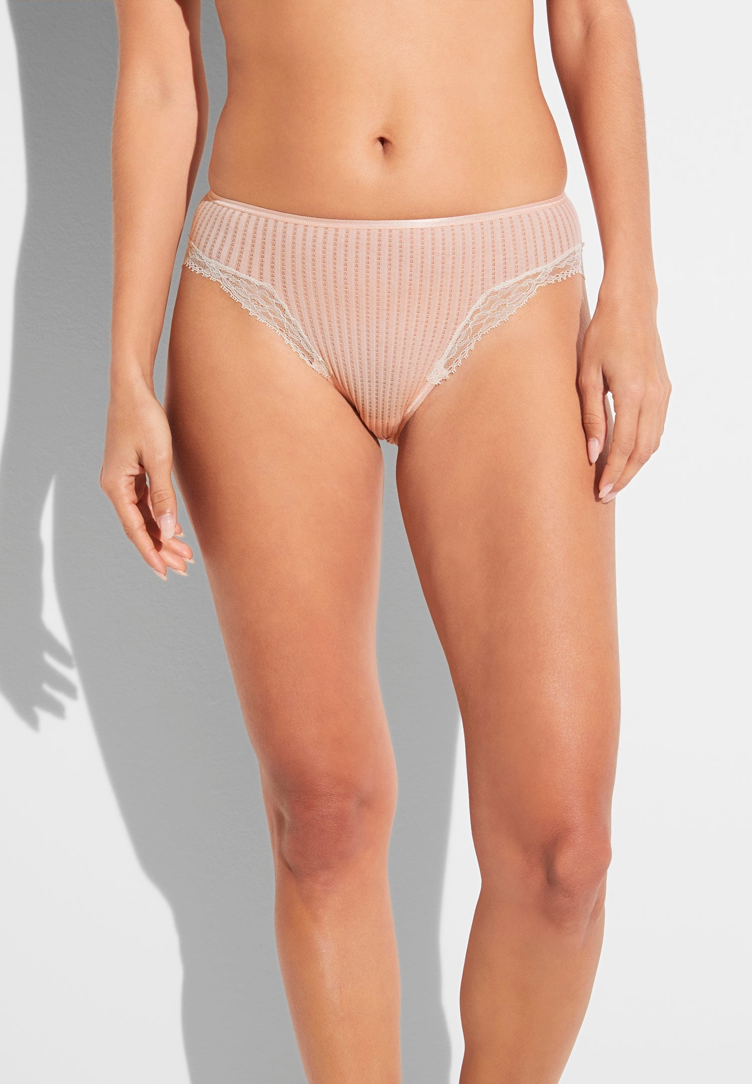 Small masterpieces are hidden in the airy ajouré ribs. Filigree patterns crowned by delicate Calais lace permeate the pure cotton of this slip. So much luxury is only possible with exquisite handcrafted products.