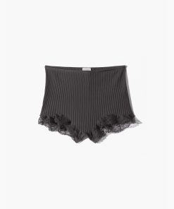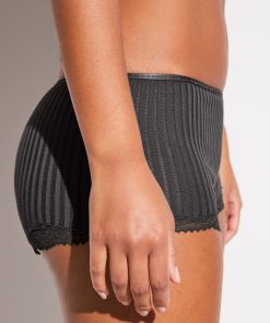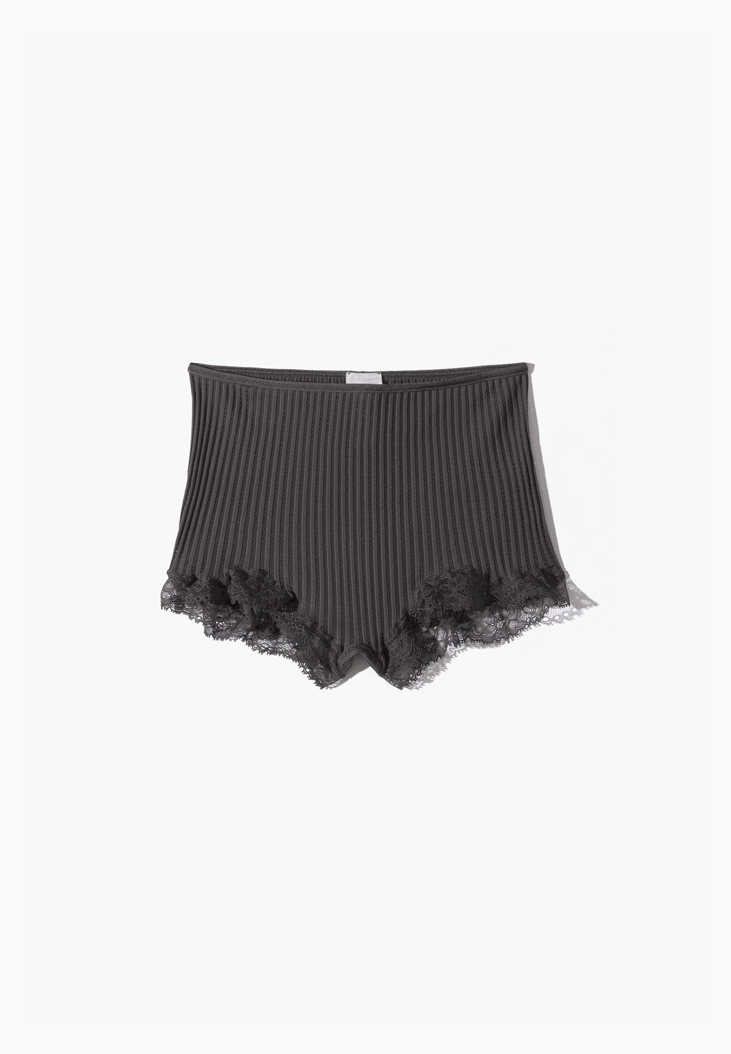 Zimmerli Women’s Underwear Maude Privé | Hipster, Ajouré Rib With Calais Lace, Low-cut Leg – Graphite Grey | Graphite Grey