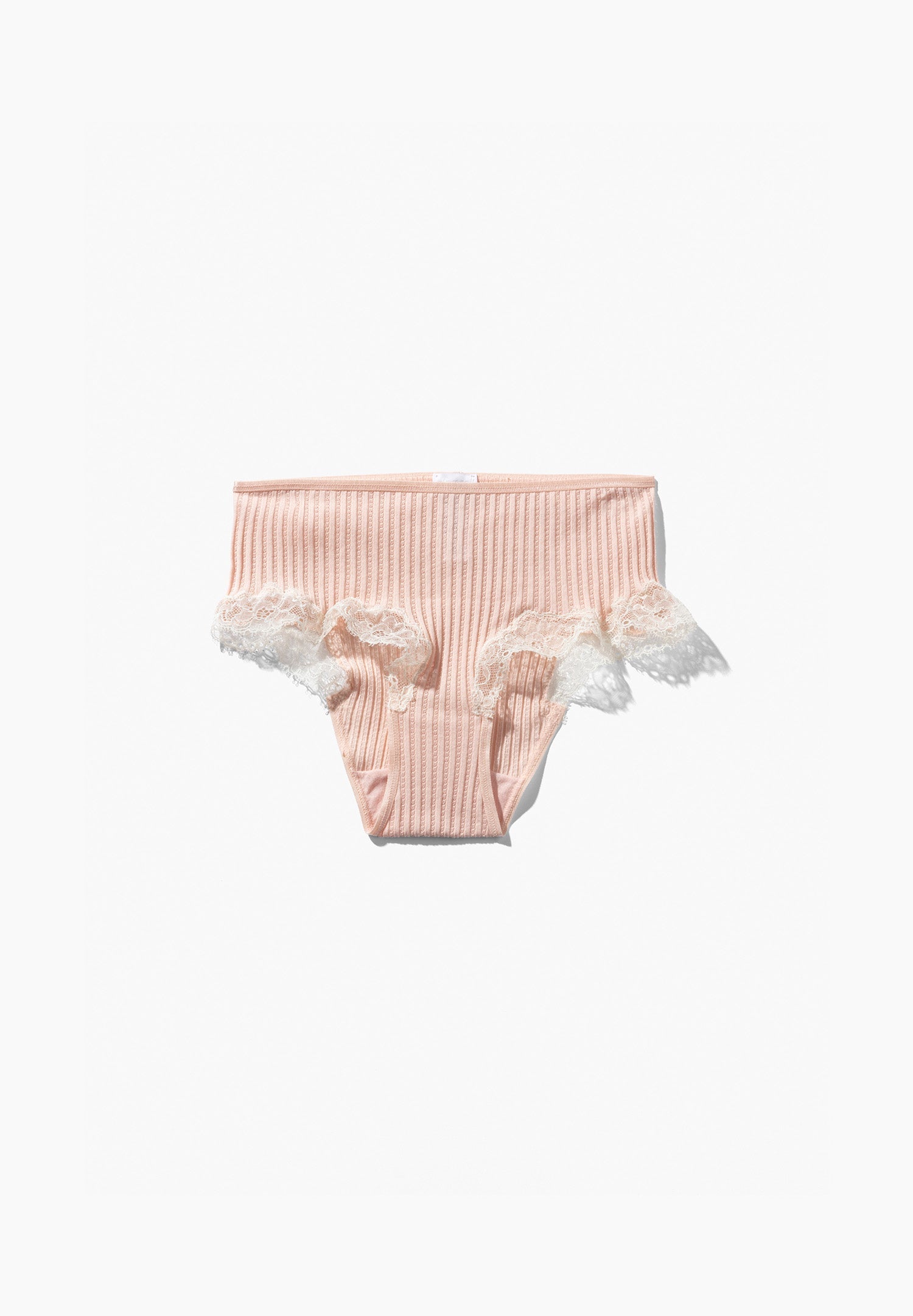 Small masterpieces are hidden in the airy ajouré ribs. Intricate patterns run through the pure cotton of these high-waisted hipsters, which are topped with delicate lace from Calais. So much luxury is only possible with passionate Swiss craftsmanship.