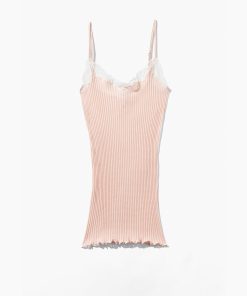 Zimmerli Women’s Underwear Maude Privé | Spaghetti Top, Ajouré Rib With Calais Lace – Blush | Blush