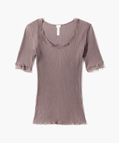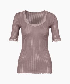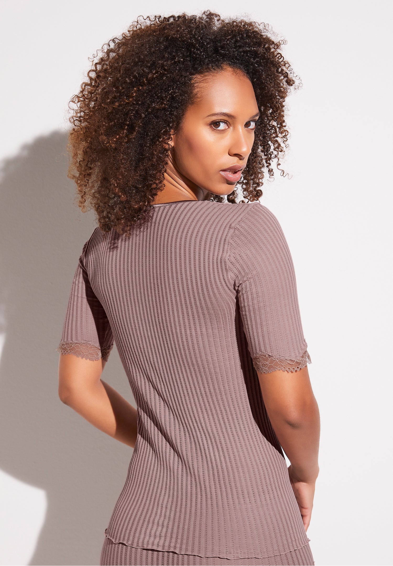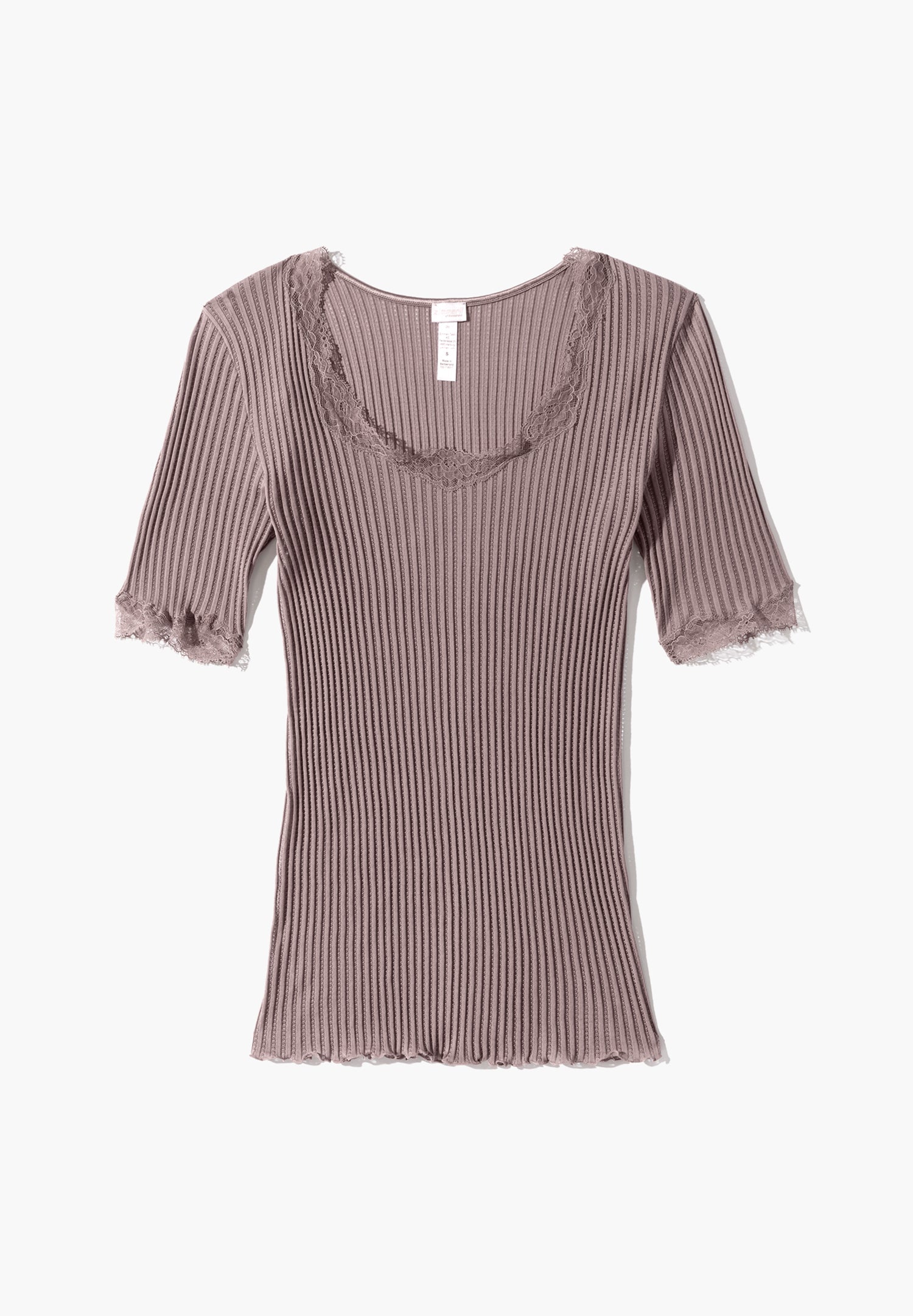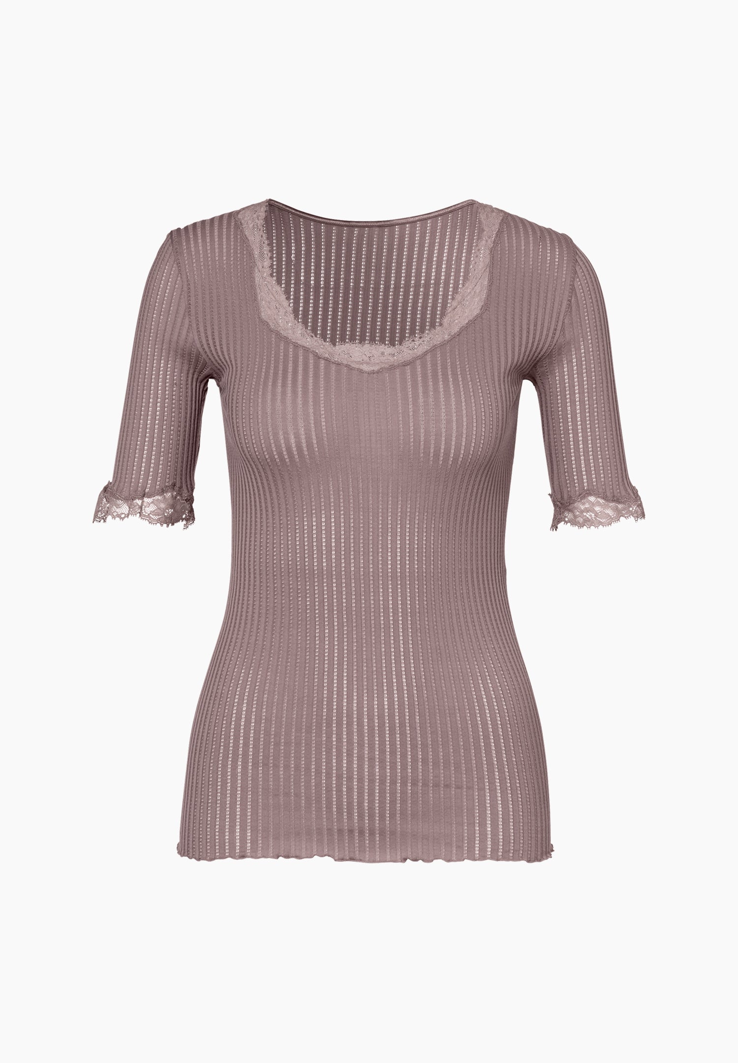 The light and airy Ajouré-Rib conceals small works of art. Filigree patterns intertwine the pure cotton of this shirt, adorned by delicate Calais lace: luxuriously crafted by hand, in the seasonal colour Dark Shadow, these can be perfectly worn as tops.