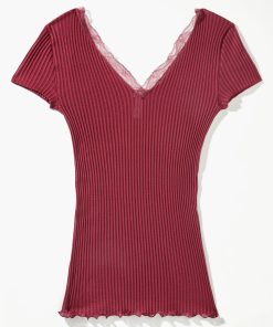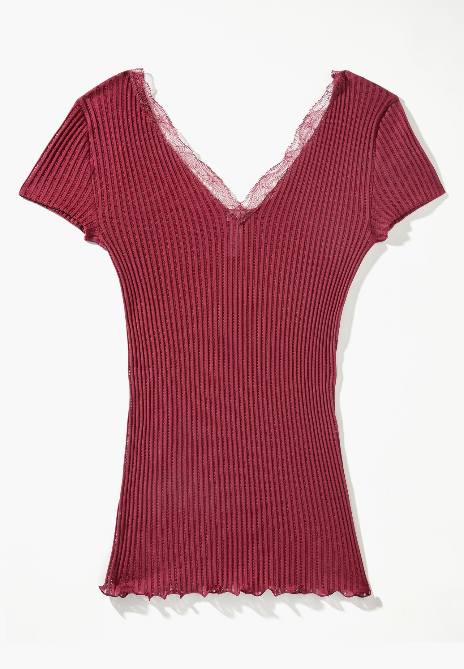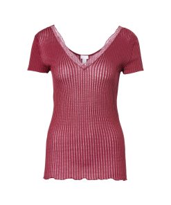 Zimmerli Women’s Underwear Maude Privé | T-shirt Short Sleeve V-neck – Cranberry | Cranberry