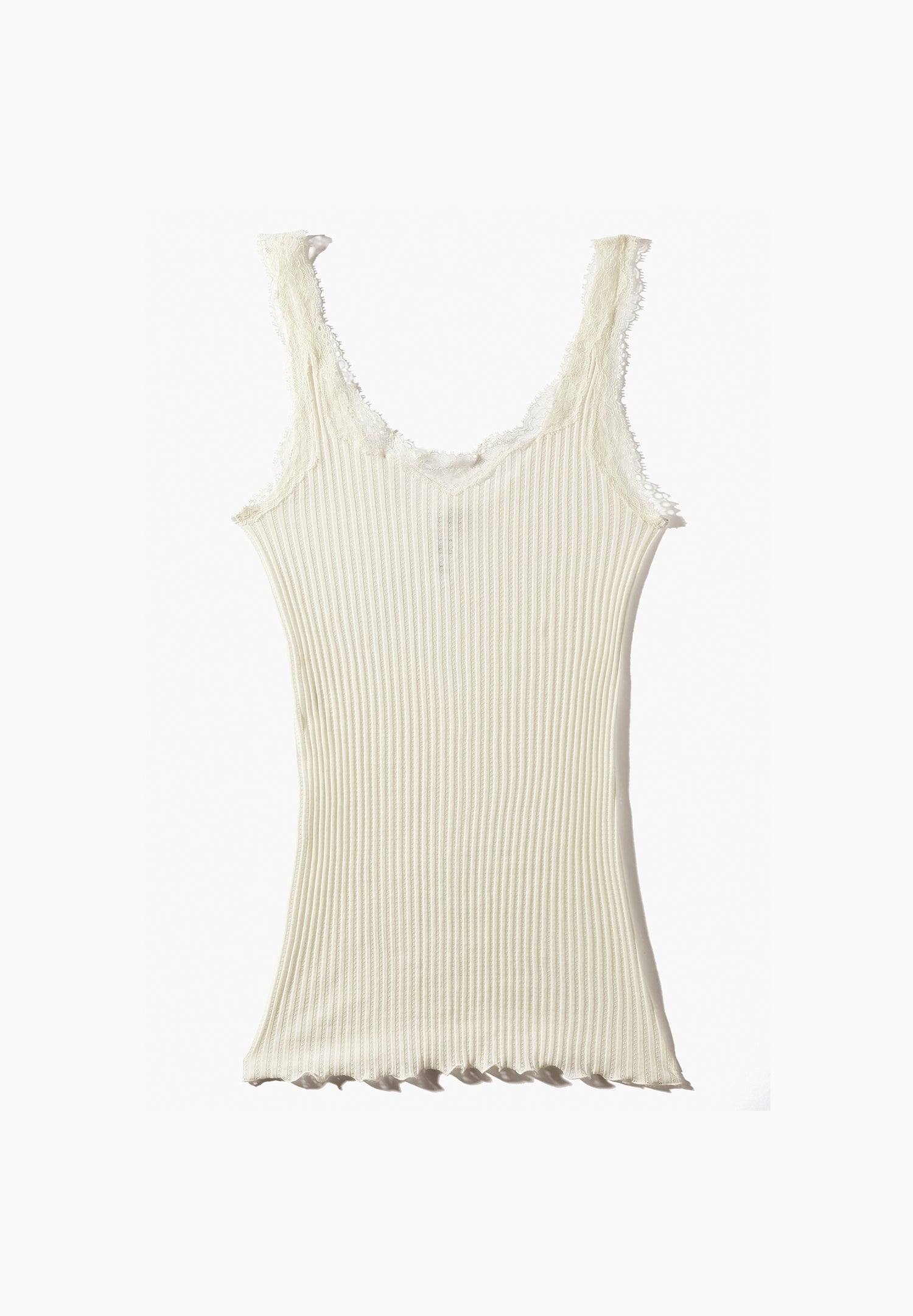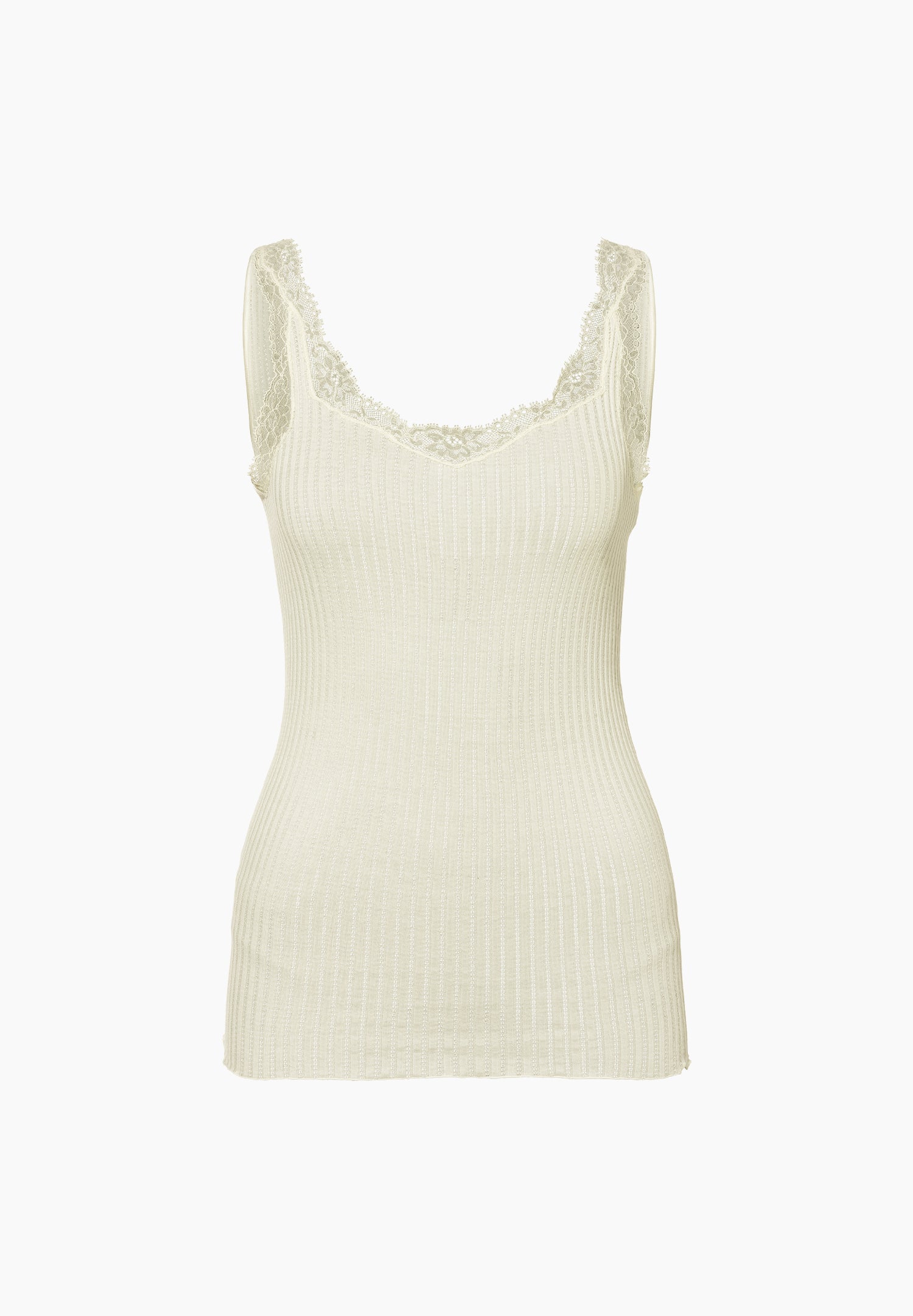 The light and airy ajouré rib conceals small works of art. Filigree patterns intertwine the pure cotton of the shirt, which is topped off with delicate Calais lace. All this luxury is only possible with exquisite craftsmanship that makes it perfectly wearable as a top.