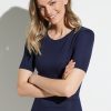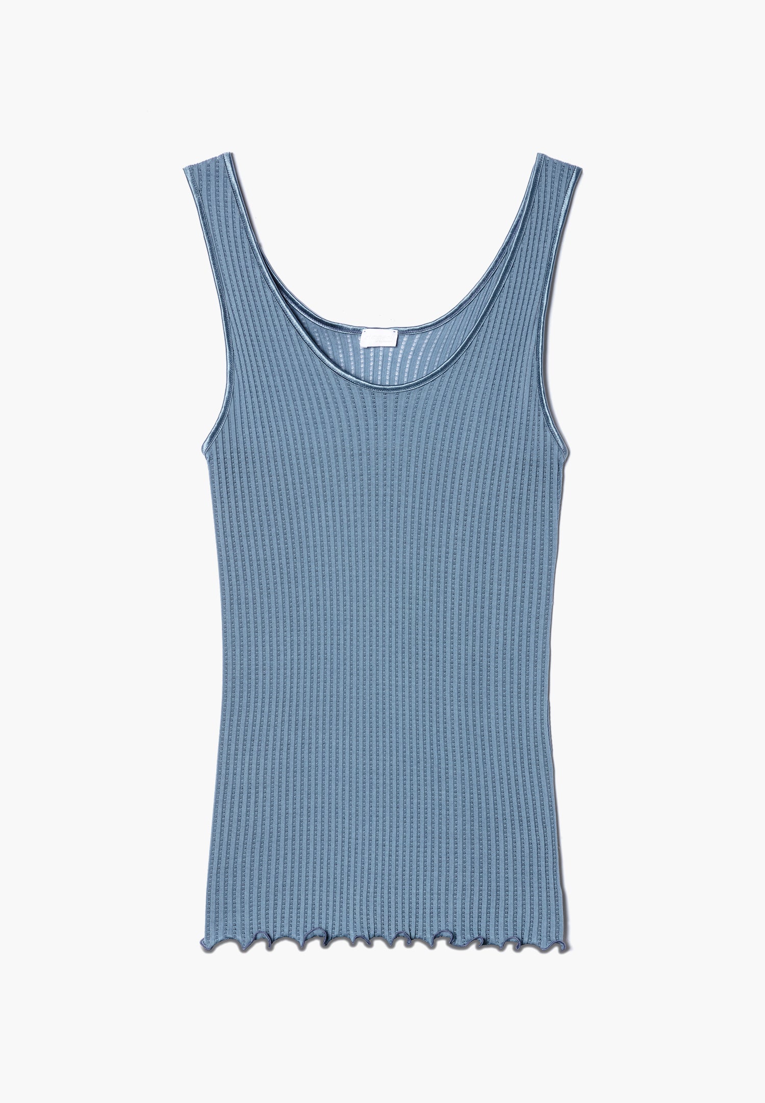 Modern private luxury – a Zimmerli Iconic new without lace. This elegant women’s top from the Maude Privé line is both underwear and ready-to-wear style and epitomises passionate Swiss craftsmanship, timeless feminine design and maximum comfort. The sensual Maude Privé line impresses with its sophisticated fine rib fabric, which is knitted as a tube without any side seams. These sensual masterpieces with passion delicately caress every body. Made from the finest Swiss cotton, the delicately translucent ajouré rib reveals artistic patterns and an incomparable lightness. The satin edging on the armholes and back sets sophisticated accents, while the ruffled hem emphasises the feminine elegance. The neckline and hem are cut out by hand and finished with the utmost care. The luxurious styles in this line are made in Switzerland with great craftsmanship – as exclusive underwear or ready-to-wear tops that can also be worn on the outside. Let your feminine side shine and enjoy the incomparable feeling of the finest Swiss craftsmanship.