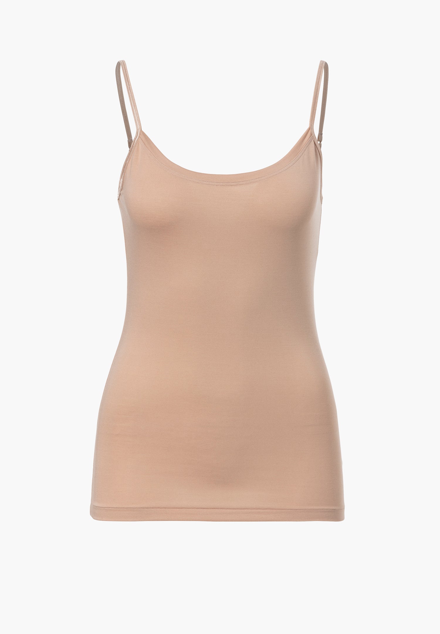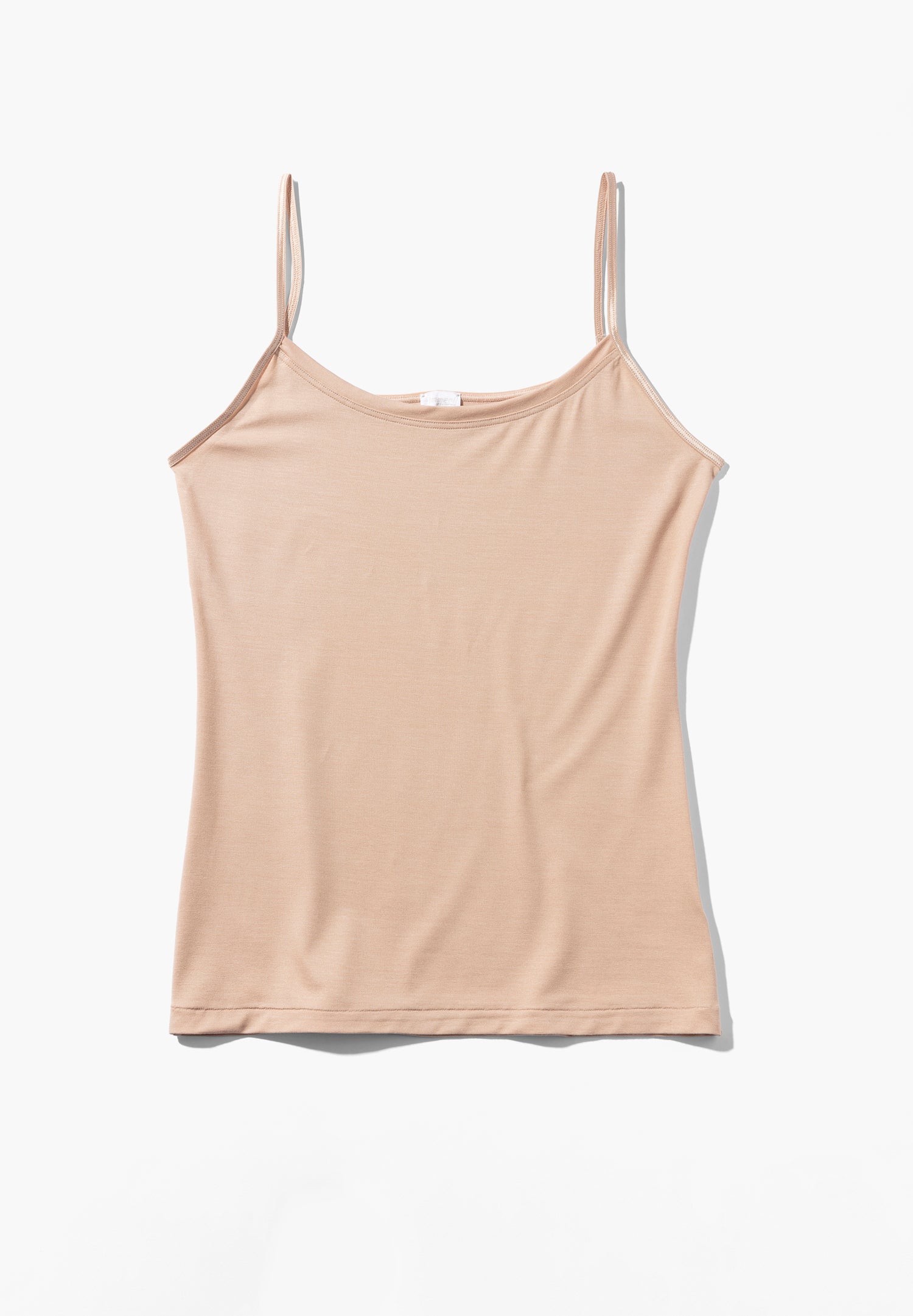 A delicate, figure-hugging spaghetti top made from a blend of Micromodal and elastane. The Micromodal used is obtained from sustainably produced, natural beechwood fibres. It is breathable and offers excellent temperature regulation. Micromodal can absorb up to 50% more moisture than other varieties of cotton. In addition, Micromodal is as soft as silk and has a beautiful drape.
