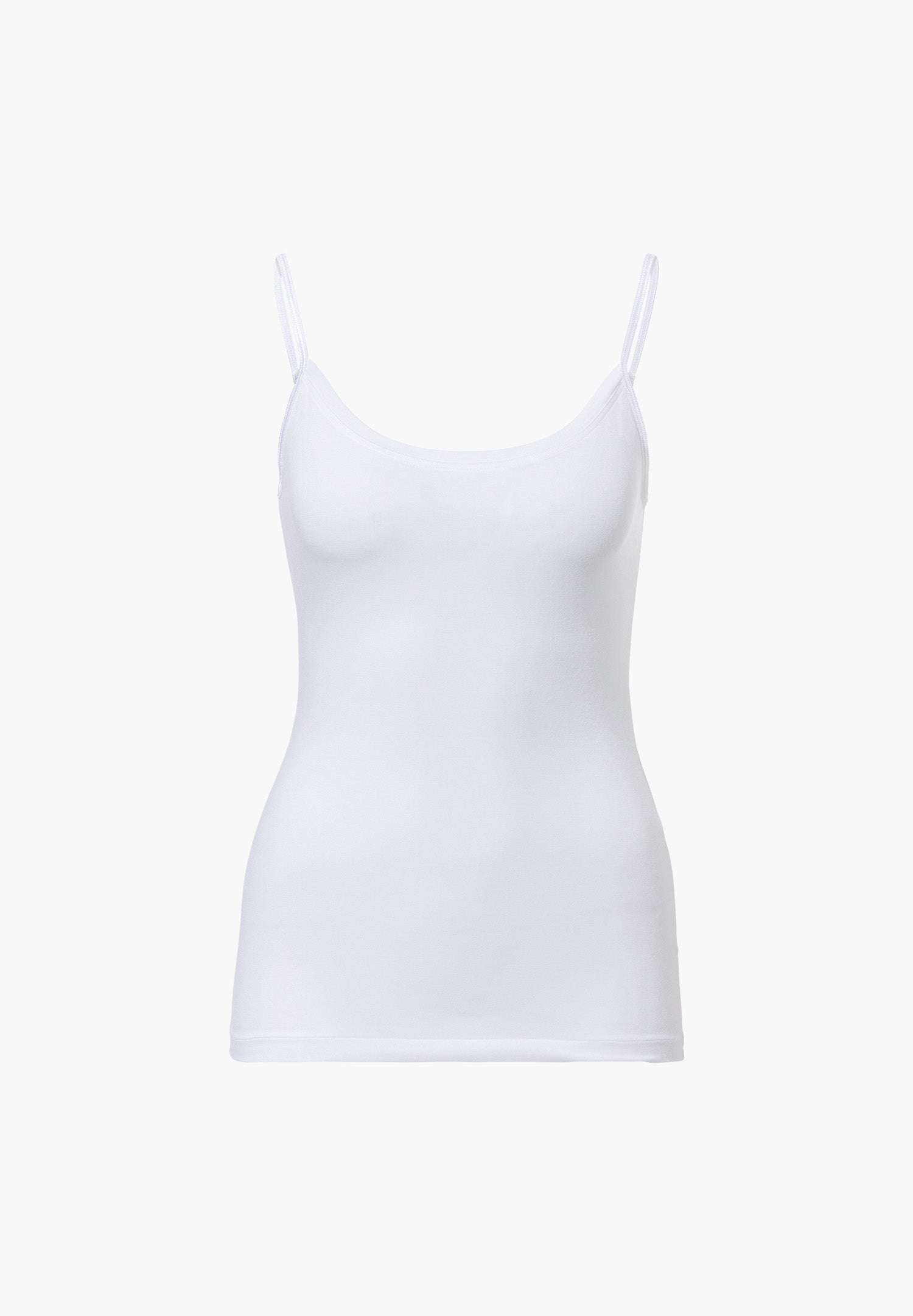 A delicate, figure-hugging spaghetti top made from a blend of Micromodal and elastane. The Micromodal used is obtained from sustainably produced, natural beechwood fibres. It is breathable and offers excellent temperature regulation. Micromodal can absorb up to 50% more moisture than other varieties of cotton. In addition, Micromodal is as soft as silk and has a beautiful drape.