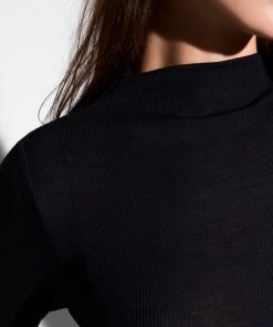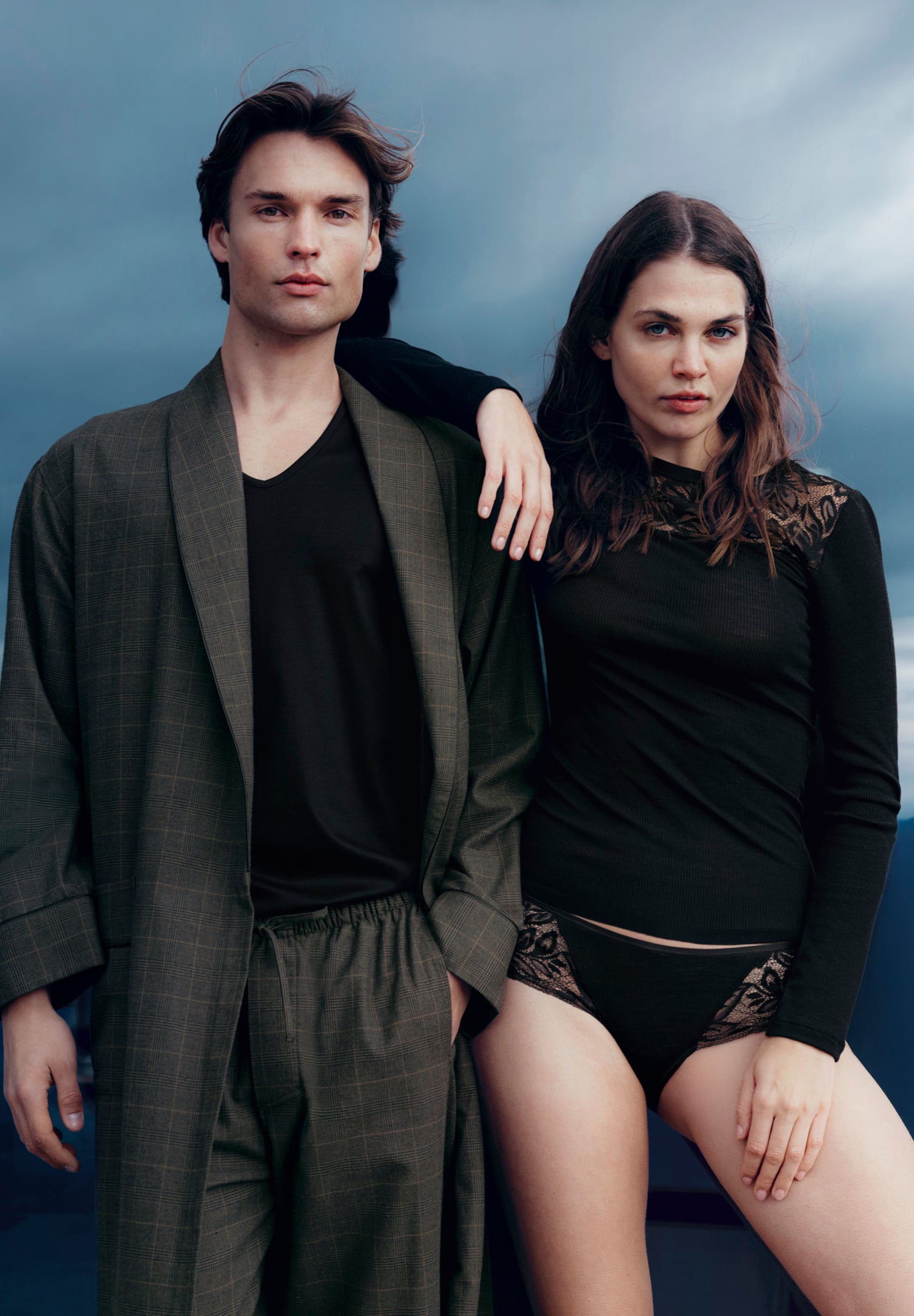 The mock-neck long-sleeve top from the Wool & Silk line is made from a blend of wool and luxurious silk, adorned with graceful embroidery. The fabric is suitable as functional underwear for light sports activities and can also be worn as a warm base layer on its own.