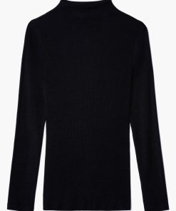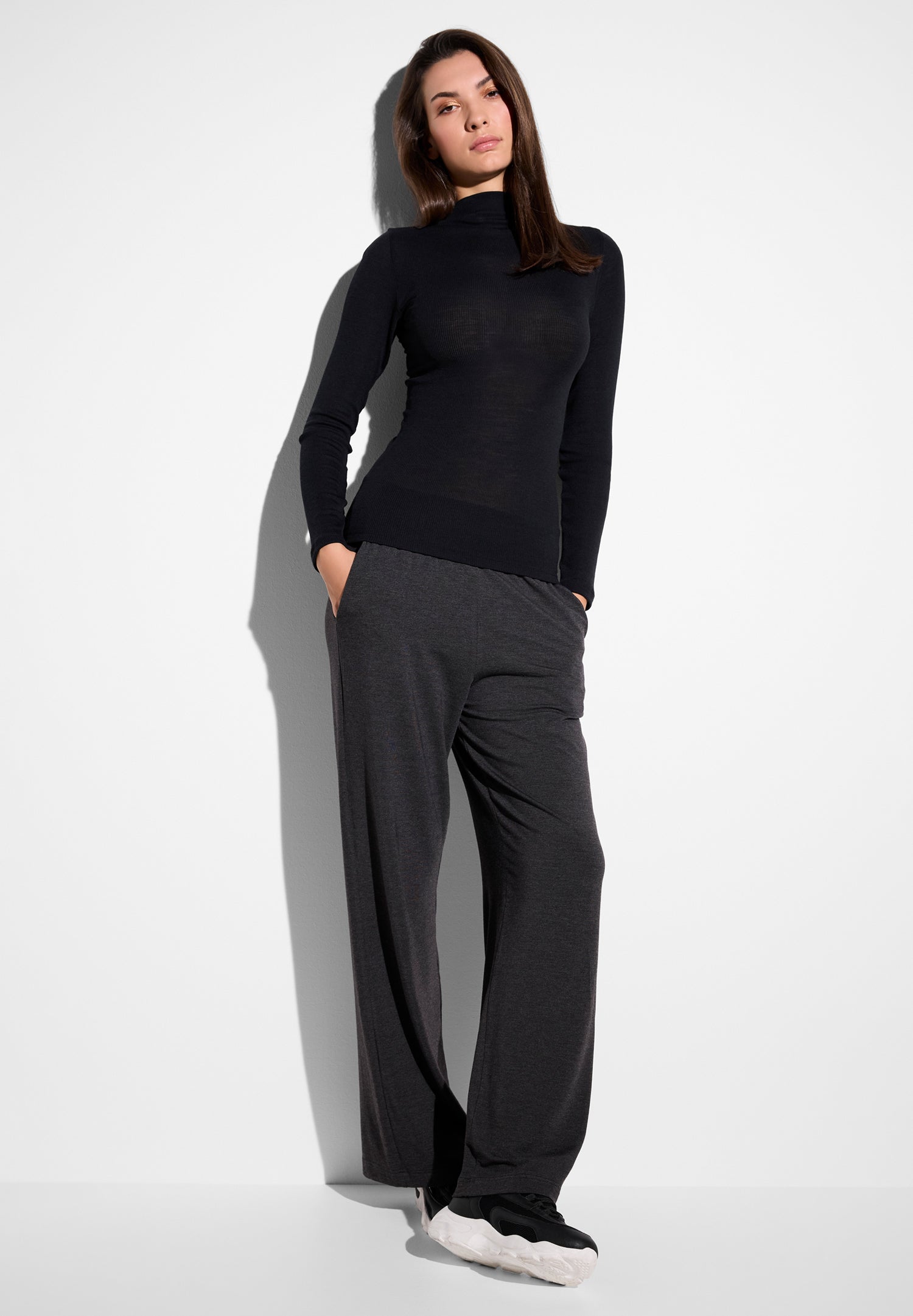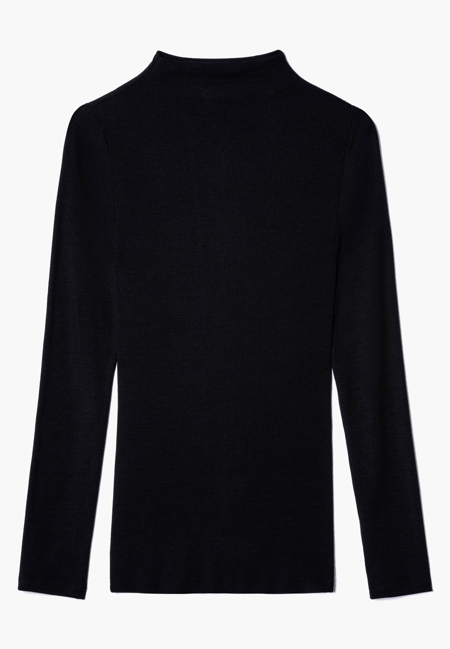 Fine ribbed fabric with a subtle texture, crafted from luxurious wool and silk Material. This long-sleeved women’s jumper stands out with its distinctive collar, which gently hugs the neck with a slightly raised design, providing a pleasant warmth. Made without side seams, the fabric fits seamlessly to your body thanks to the circular knitting technique.