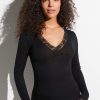 The mock-neck long-sleeve top from the Wool & Silk line is made from a blend of wool and luxurious silk, adorned with graceful embroidery. The fabric is suitable as functional underwear for light sports activities and can also be worn as a warm base layer on its own.